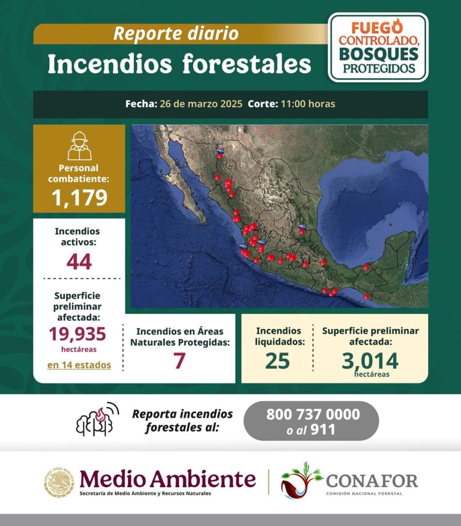 Se recuerda a la población en general que en caso de visitar algún área forestal, evitar el uso del fuego, no dejar basura y no arroje colillas de cigarro encendidas. Para el reporte de incendios forestales llamar al teléfono 800 737 0000 o al 911.