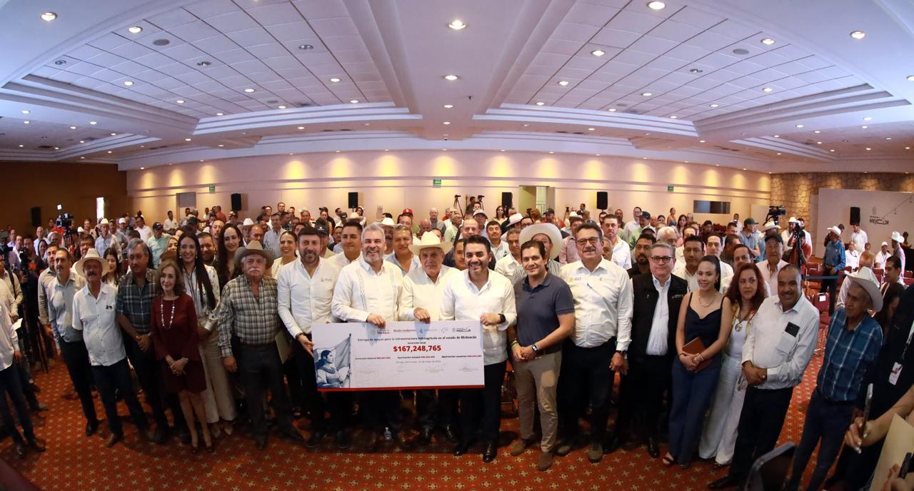 El titular de la Conagua subrayó que la entrega de estos recursos es un ejemplo claro de cómo se puede establecer una alianza para generar un impacto positivo en la producción y en el uso del agua, mediante el revestimiento de canales, la tecnificación de parcelas y la compra de maquinaria. Dentro de las acciones para Michoacán, puntualizó, se llevará a cabo el Proyecto Chapultepec, que permitirá tecnificar el campo y dotar de agua a dos regiones vulnerables en materia hídrica, aledañas al lago de Pátzcuaro.