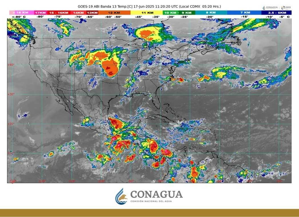 - Se prevén lluvias de fuertes a intensas en Guerrero, Oaxaca, Chiapas, Veracruz (sur), Puebla y Tabasco