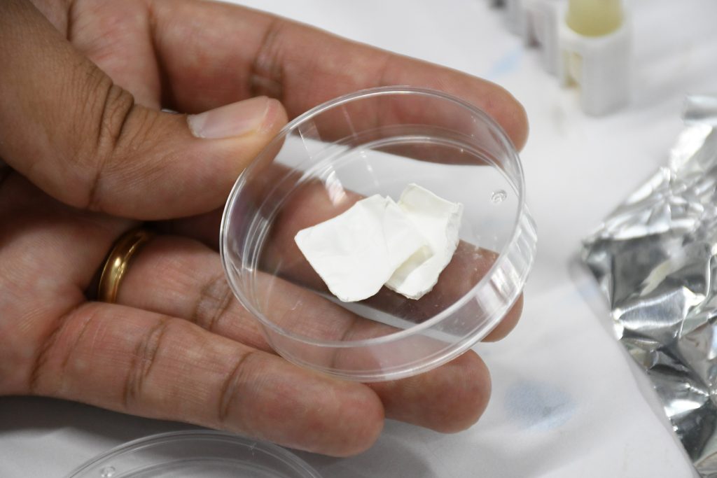Hasta el momento, las pruebas se han realizado con luz ultravioleta. “Cuando se utilizan las fibras sin oro, a los 5 minutos ya se observa decoloración. En cuestión de los fármacos tenemos respuesta a los 30 minutos o una hora; por ello, se estableció un tiempo estándar de 180 minutos, a escala de laboratorio y en situación real”.
