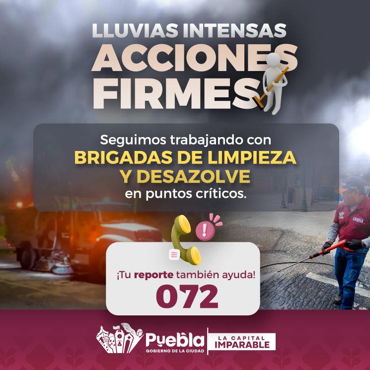 El Gobierno de la Ciudad de Puebla, en coordinación con el Gobierno del Estado y el Gobierno Federal, continúa trabajando mediante el Comité de Fenómenos Hidrometeorológicos “Tláloc”, conformado por diversas dependencias que, desde sus funciones y atribuciones, suman esfuerzos para prevenir, analizar e intervenir ante eventos hidrometeorológicos. Esta estrategia permite una respuesta oportuna en zonas vulnerables de la capital, garantizando la seguridad, movilidad y tranquilidad de las y los poblanos.