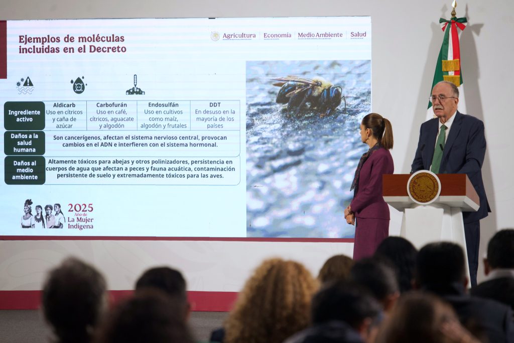 El Gobierno de México, a través de las Secretarías de Agricultura y Desarrollo Rural, de Economía, de Medio Ambiente y Recursos Naturales, y de Salud, informa la prohibición de 35 plaguicidas por su alta peligrosidad para la salud y el medio ambiente, con base en evidencia científica.