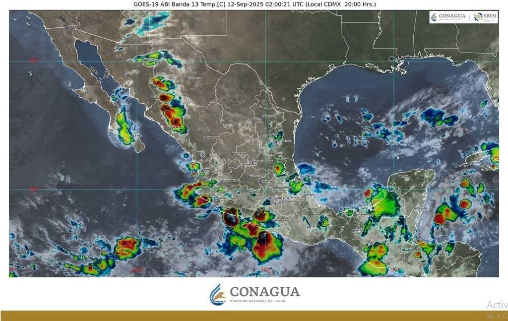 Prevalecerá el pronóstico de lluvias intensas (de 75 a 150 milímetros [mm]) en Guerrero y Oaxaca, así como rachas de viento de 40 a 60 km/h y oleaje de 2 a 3 metros de altura en costas de los estados mencionados.