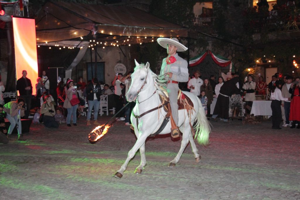 La celebración inició con una mágica recepción para sus visitantes por parte del talento artístico de Val’Quirico, caracterizados de adelitas, charros y personajes históricos quienes dieron paso al encendido de chimeneas a caballo, símbolo de la calidez de la comunidad.