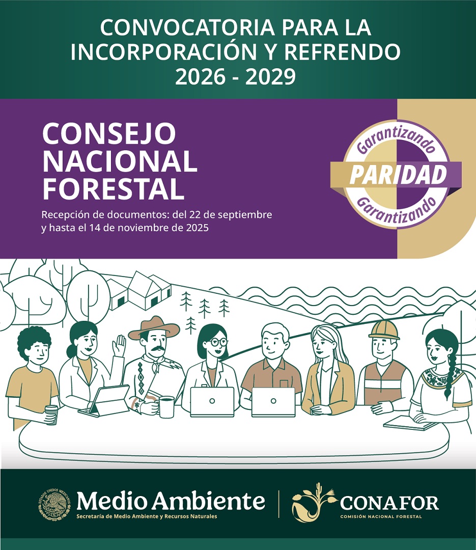 La Comisión Nacional Forestal (CONAFOR) invita a pueblos, comunidades indígenas y afromexicanas; organizaciones y agrupaciones de mujeres; así como a organizaciones civiles legalmente constituidas relacionadas con los asuntos forestales, que reúnan los requisitos establecidos en la convocatoria, a integrarse a la membresía del Consejo Nacional Forestal (CONAF) o a refrendar su participación.