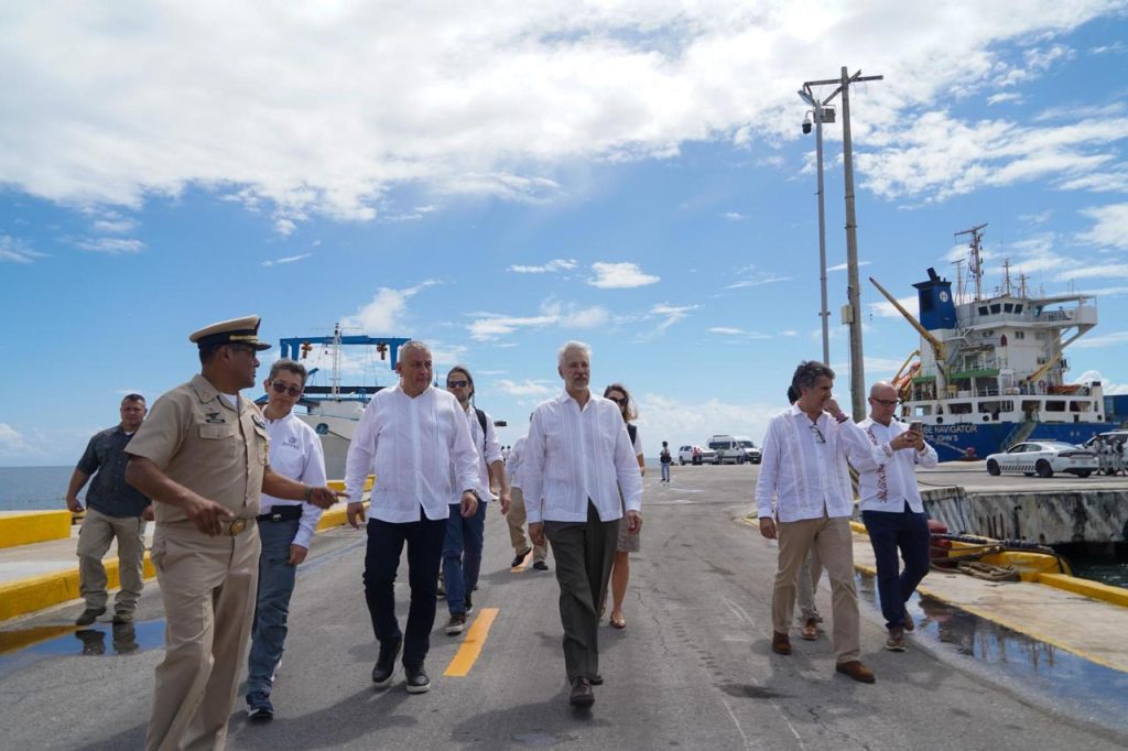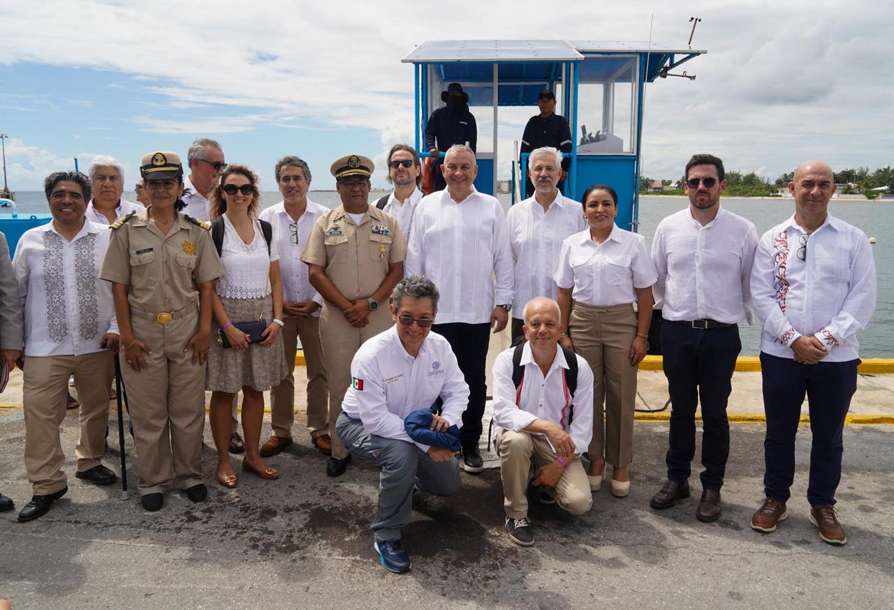Durante la visita, los funcionarios realizaron un recorrido en el buque sargacero Natans, operado por la Secretaría de Marina (Semar), donde se presentaron los avances en las operaciones de recolección, contención y disposición del sargazo en altamar.