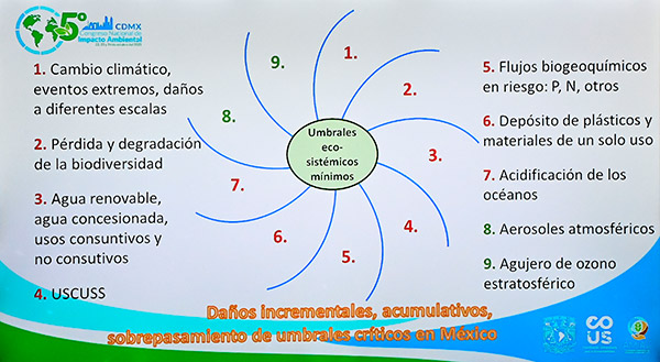 “En el caso de México debemos hacer un esfuerzo para ver cómo están nuestros procesos, cuyo rebasamiento impide procesos ecológicos imprescindibles de nuestra fuente originaria de vida”, subrayó.
