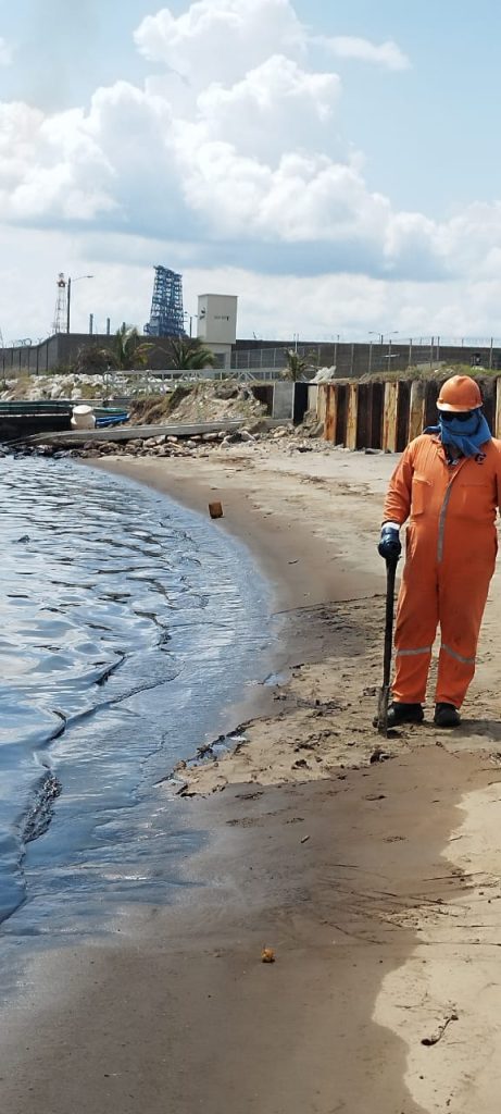 Durante las inspecciones se verificaron las labores de contención y recuperación de residuos de hidrocarburo en la dársena y en áreas con conexión a cuerpos de agua. A la fecha, se han recolectado aproximadamente 240 kilogramos de material impregnado con crudo.