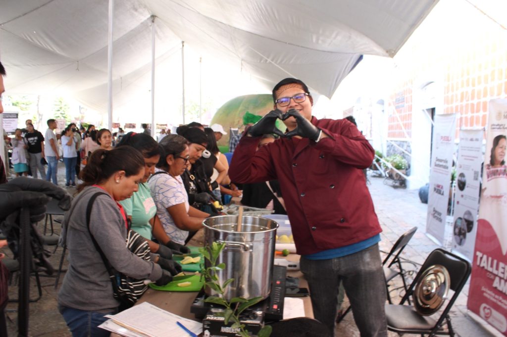 La titular de Desarrollo Rural y el director de Planeación y Geomática de la SMADSOT, Ana Laura Altamirano y Marco Antonio Ramírez, recorrieron los stands de ambas dependencias y compartieron con los habitantes de Atlixco que la política social implica que los funcionarios acudan a los territorios para escuchar a la gente de primera mano para encontrar soluciones a temas que les interesan, como agua potable, producción agrícola, trámites y servicios.